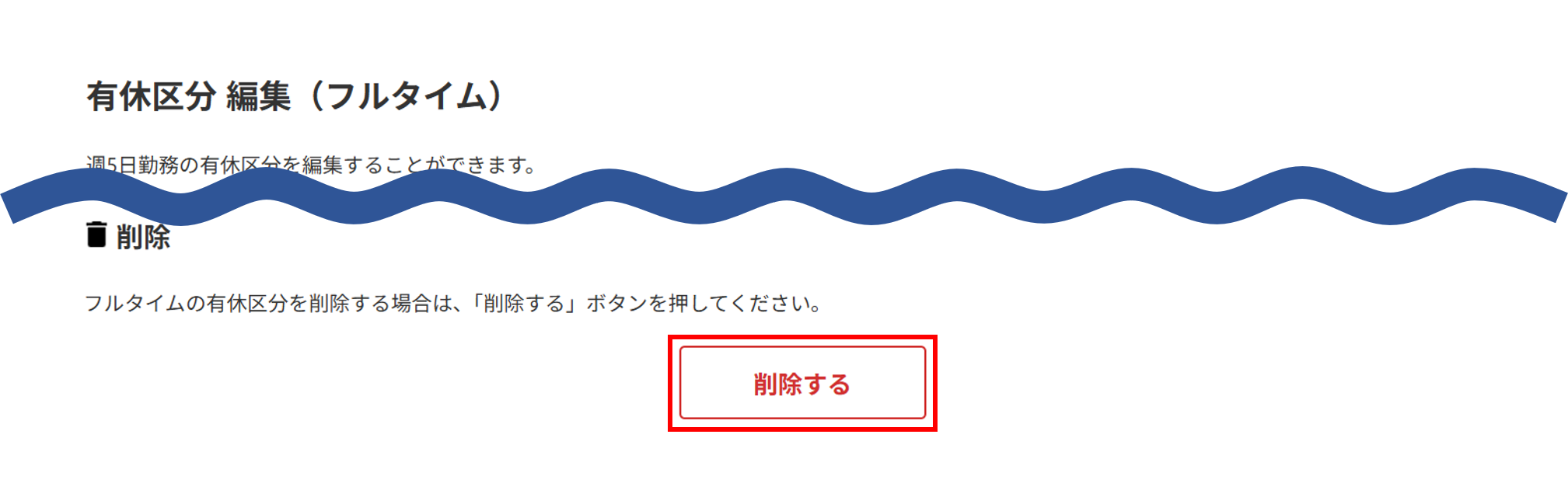 画面上部に「有休区分の削除が完了しました。」と表示されたら削除完了です。
