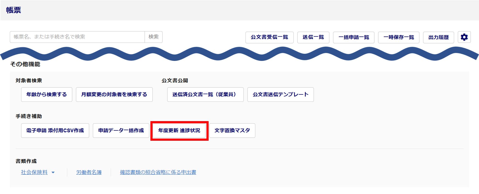 [年度更新 進捗状況]をクリックします。