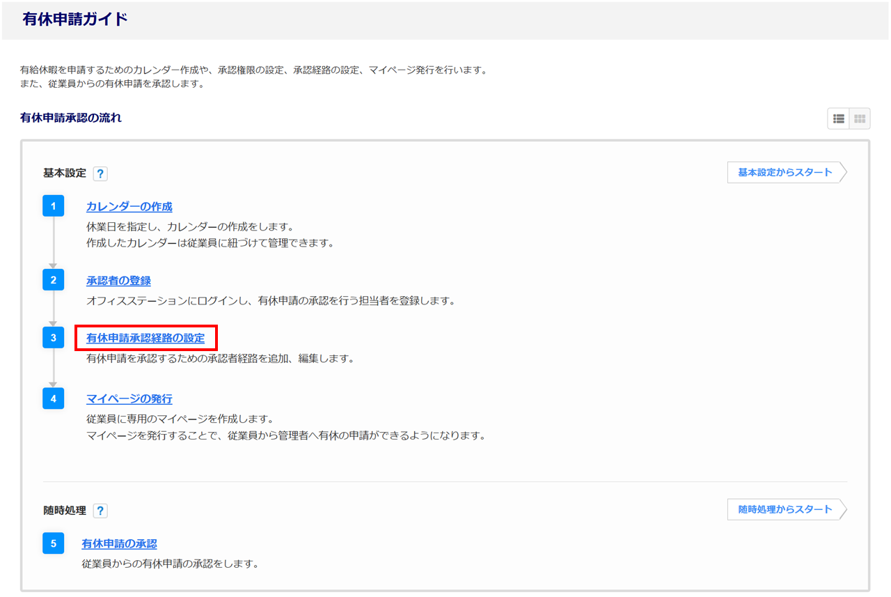 有休申請承認経路の設定