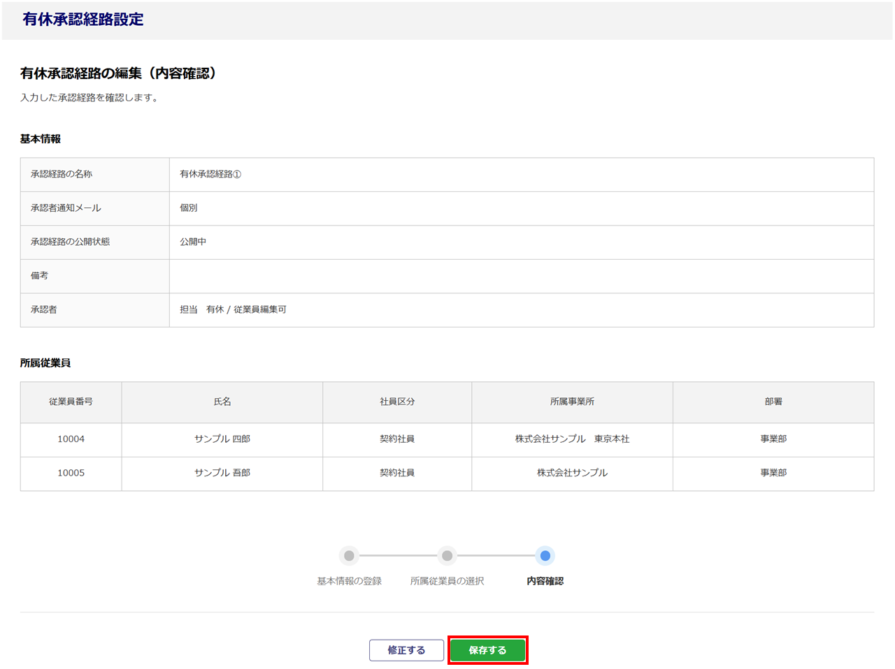 登録済み有休申請承認経路の編集