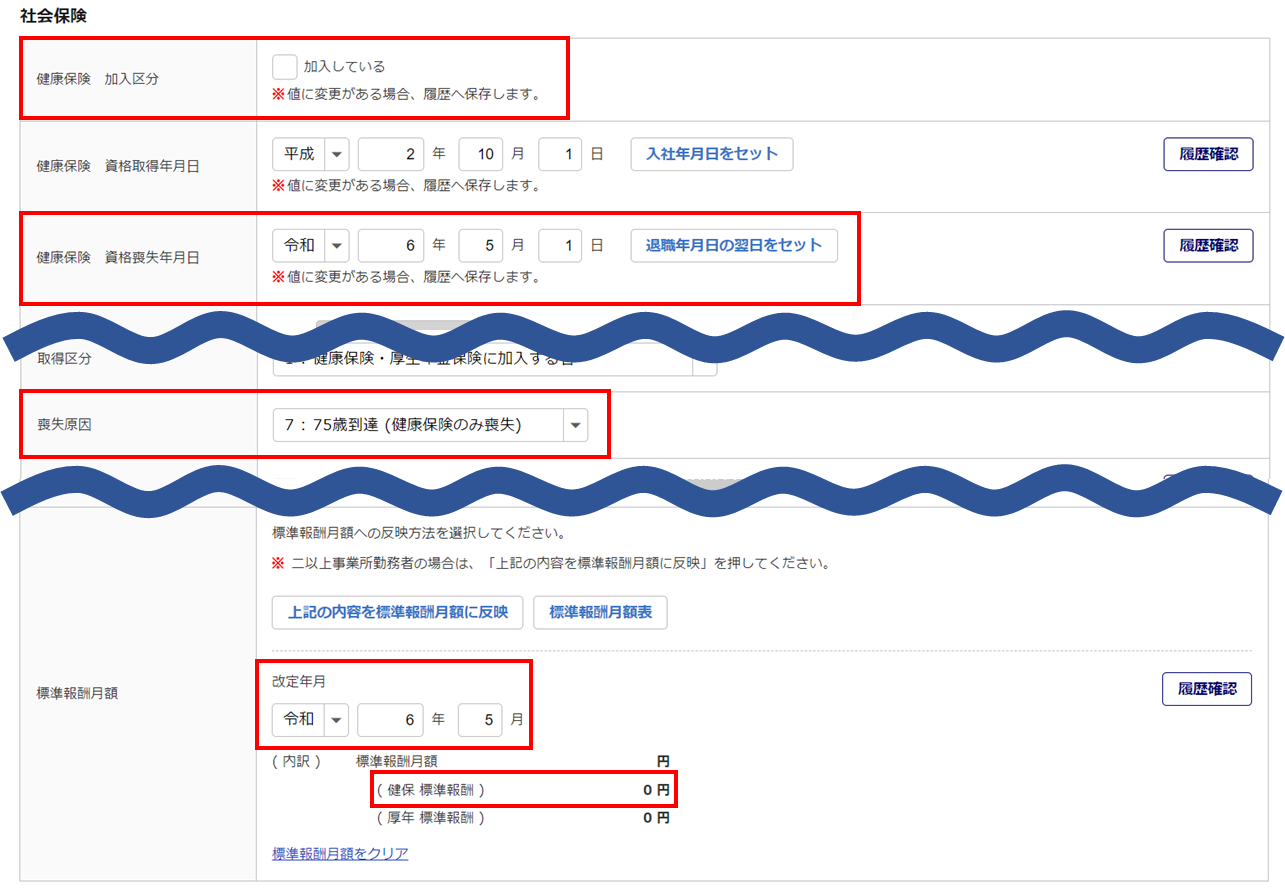 | 喪失原因 | 6:70歳到達(厚生年金保険のみ喪失) | 7:75歳到達(健康保険のみ喪失) |