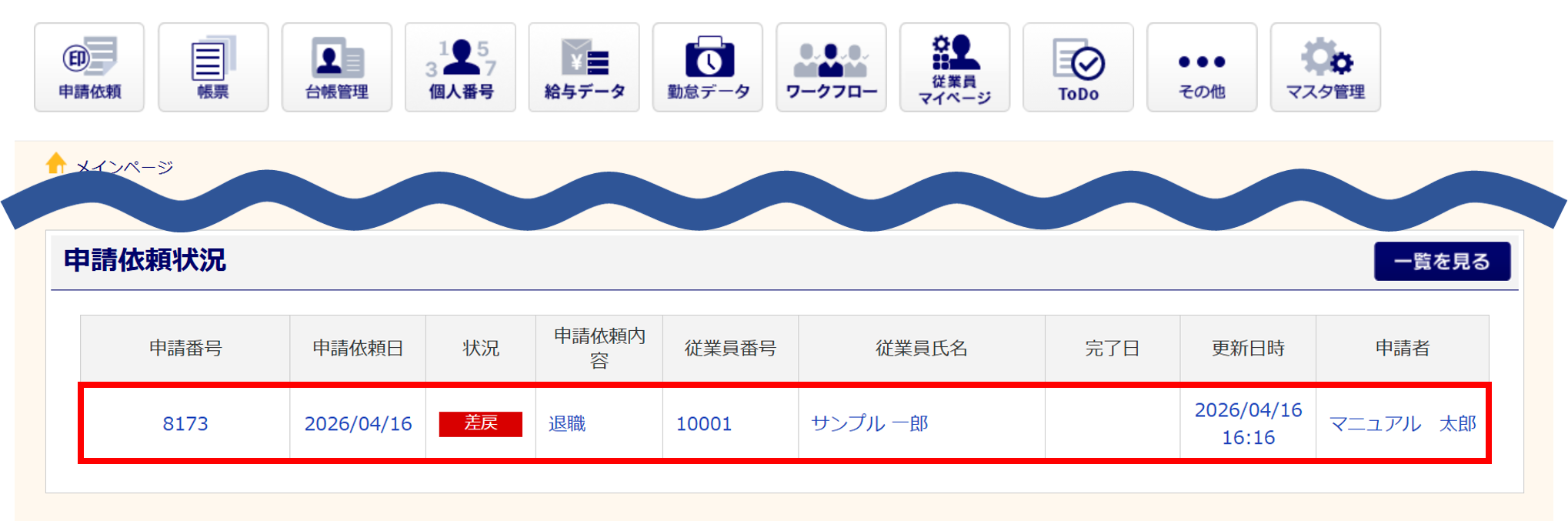 以上で、申請依頼の取り下げは完了です。