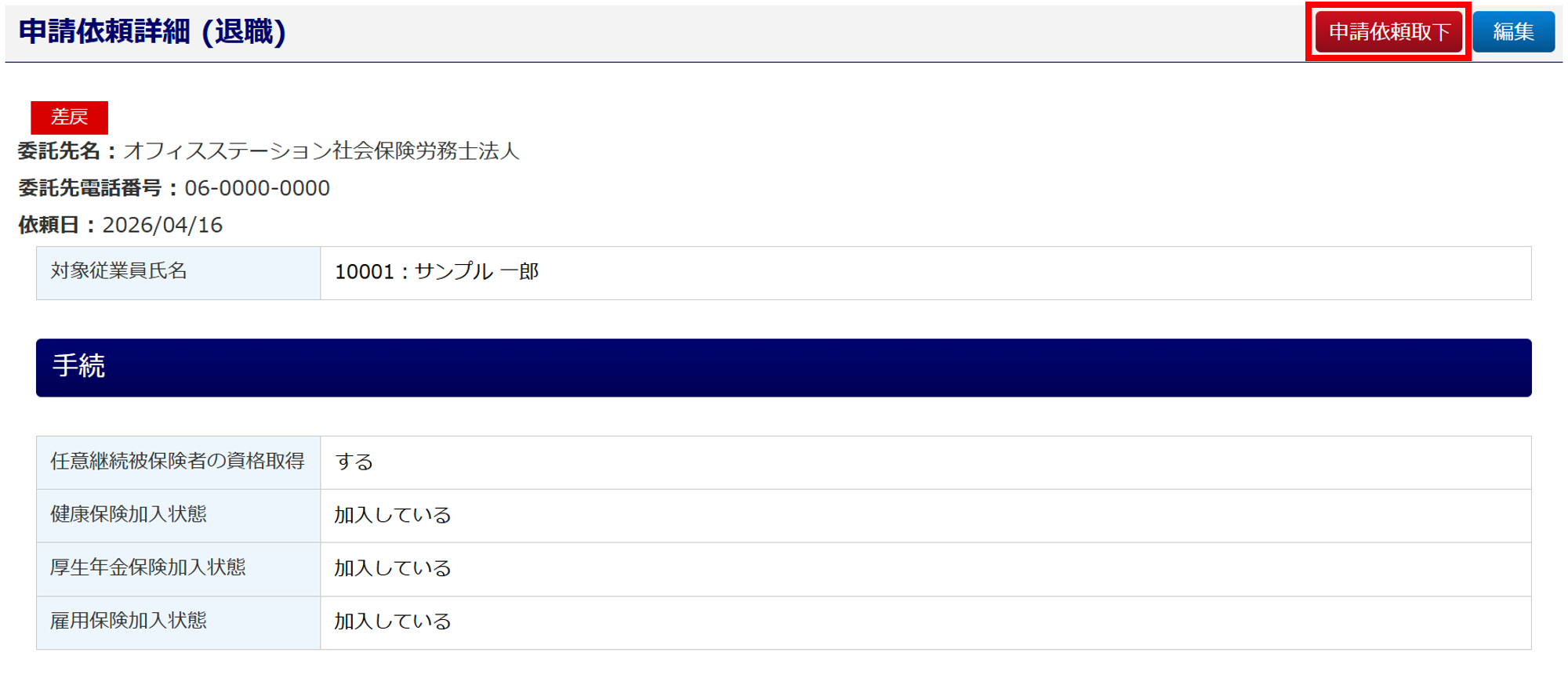 [申請依頼取下]をクリックします。
