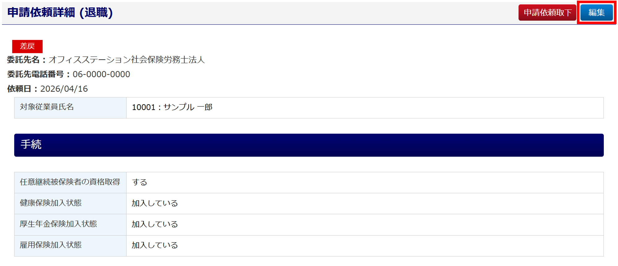 以上で、申請依頼内容を編集し再度依頼は完了です。