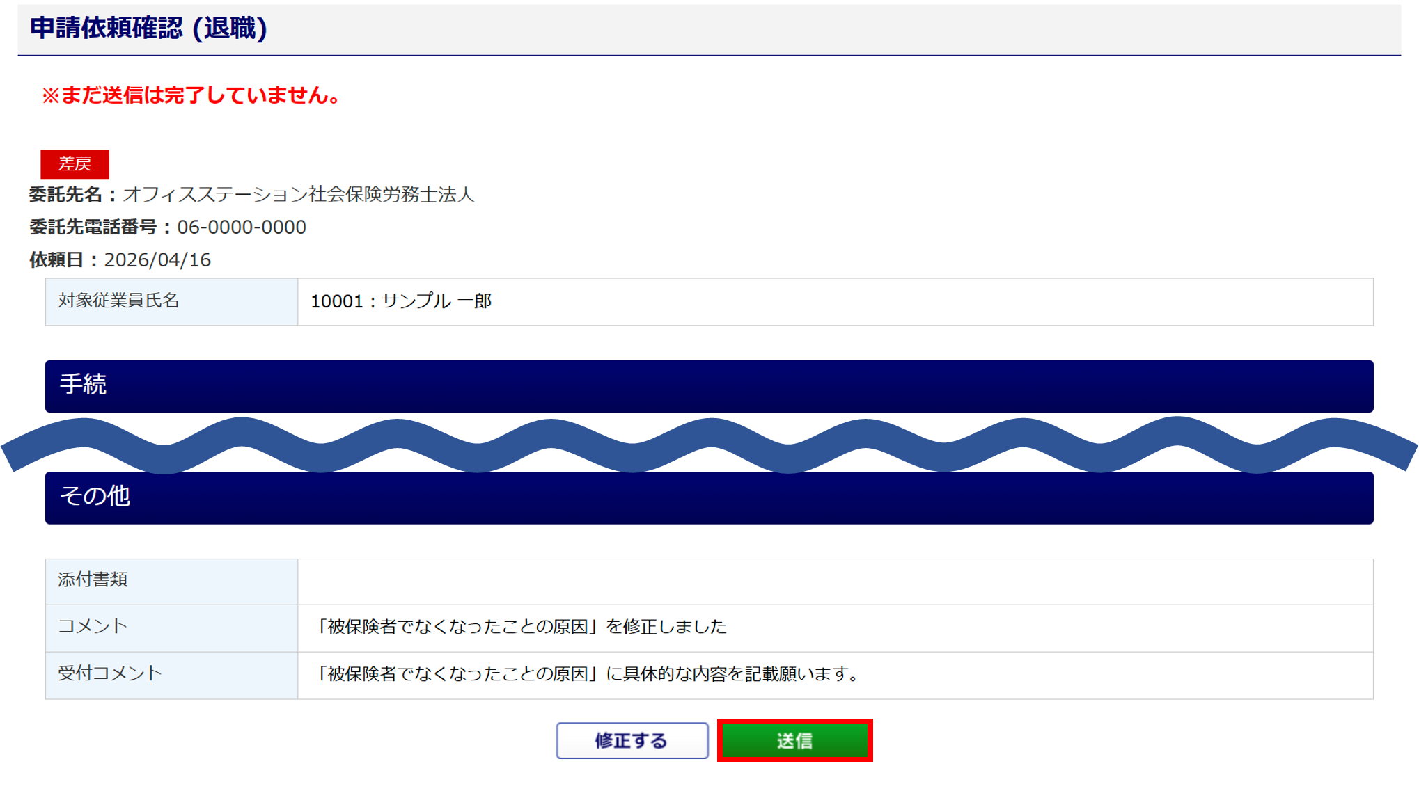 内容を確認し、[送信]をクリックします。