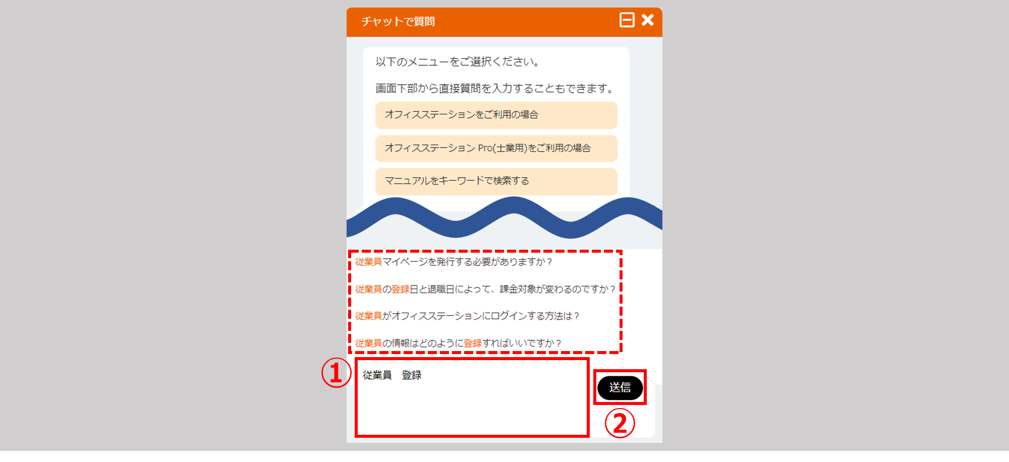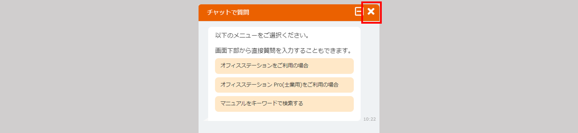| オフィスステーション Pro | 士業 | システム画面上部が緑色の場合に、ご選択ください。 アカウント発行に関する機能等についても、こちらからご質問いただけます。 |