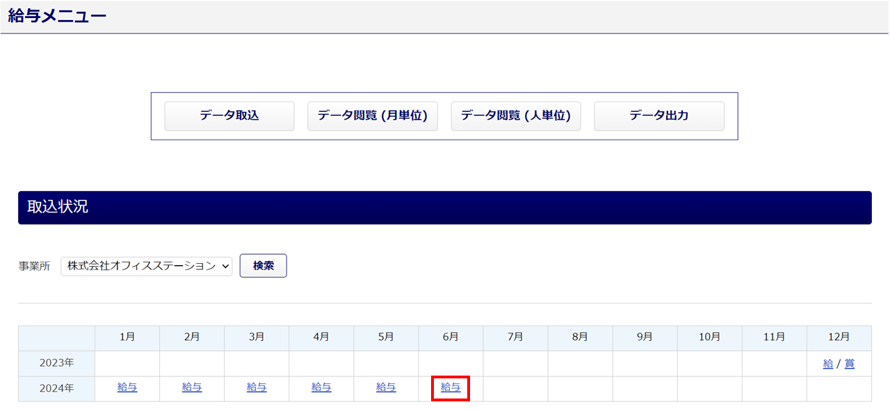 削除対象の年月の「給与(給)」または「賞与(賞)」をクリックします。