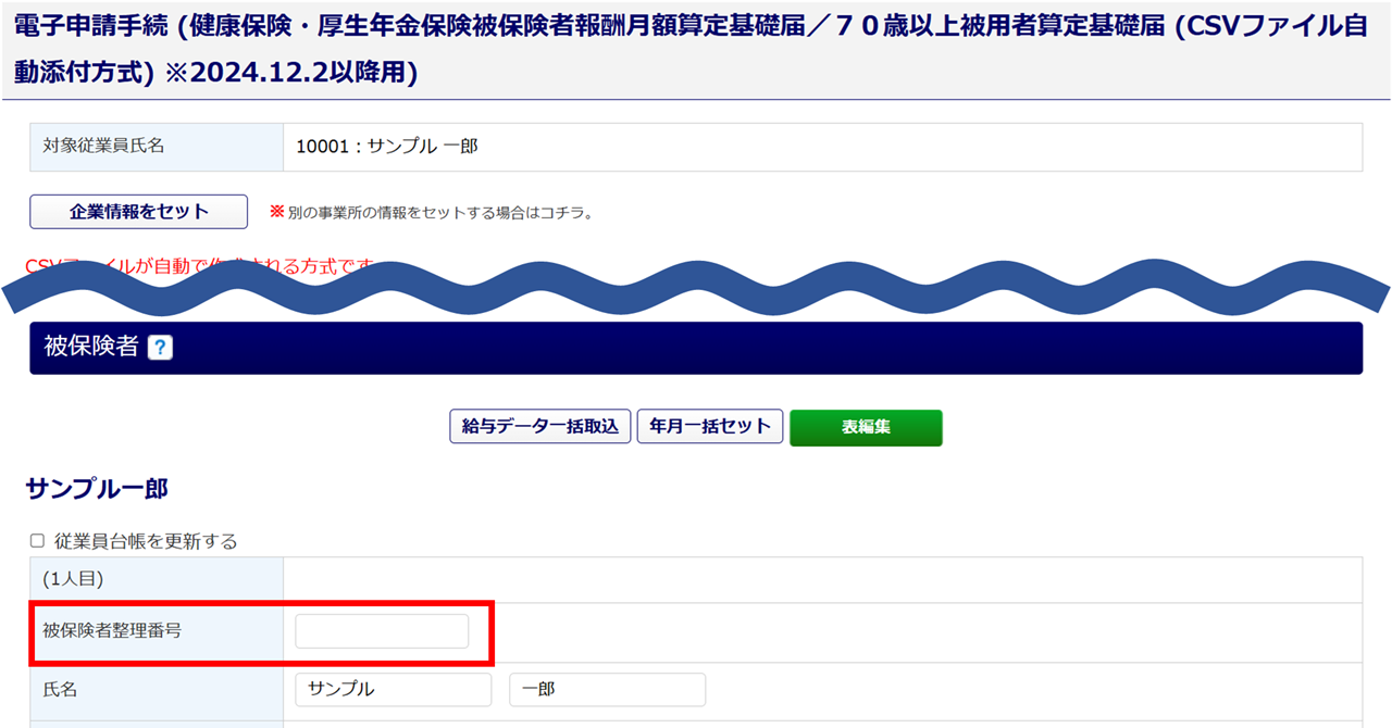 従業員台帳の「厚生年金整理番号」の設定が必要です。