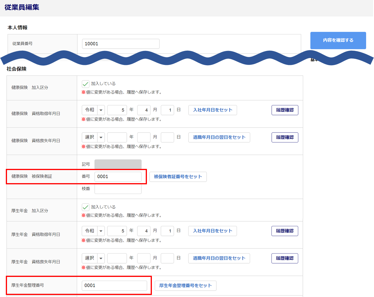 社会保険カテゴリ「厚生年金整理番号」を設定します。