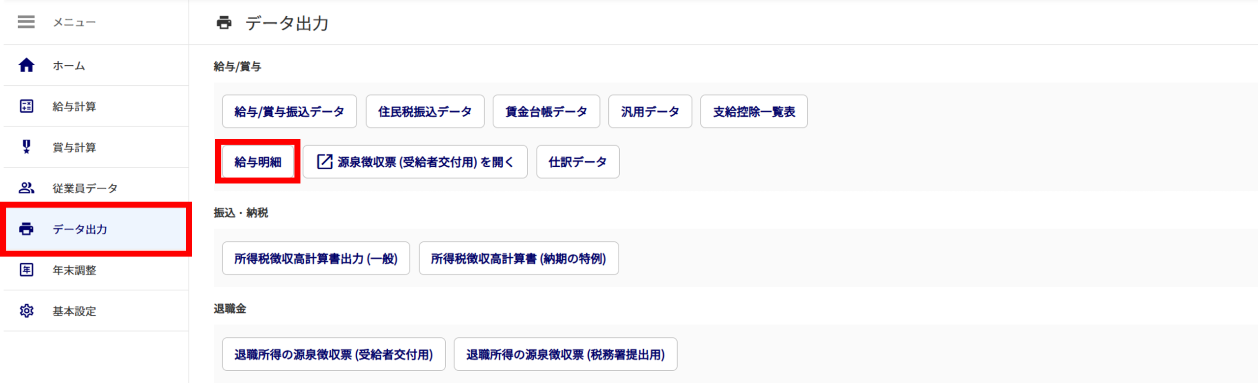 「退職金明細」の出力方法については、以下の関連記事をご参照ください。