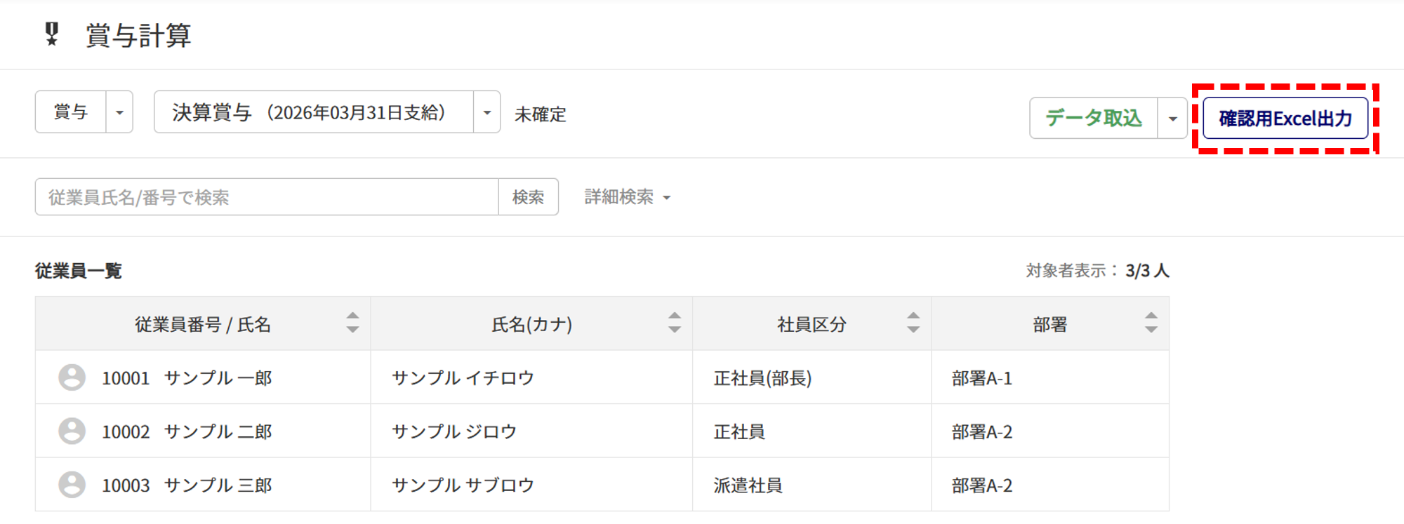 [確認用Excel出力]をクリックすると、支給額チェックデータをExcelファイルにて確認することができます。