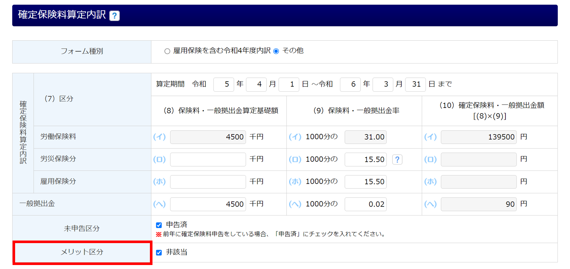 「メリット制(メリット料率)」に該当するか、非該当かを本項目で設定します。