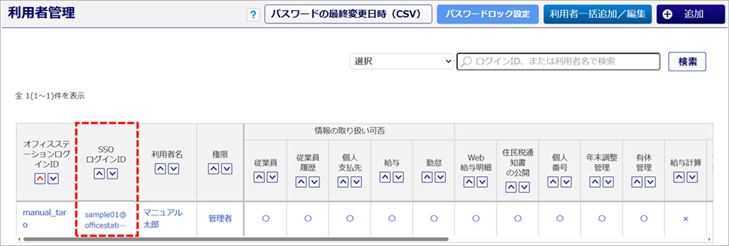 ※権限が「管理者」か「一般」で編集可否権限「可」、かつ従業員情報の取り扱い「可」の利用者のみ設
