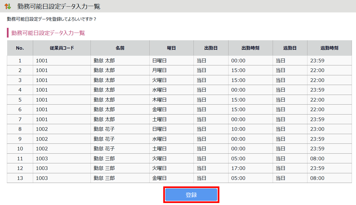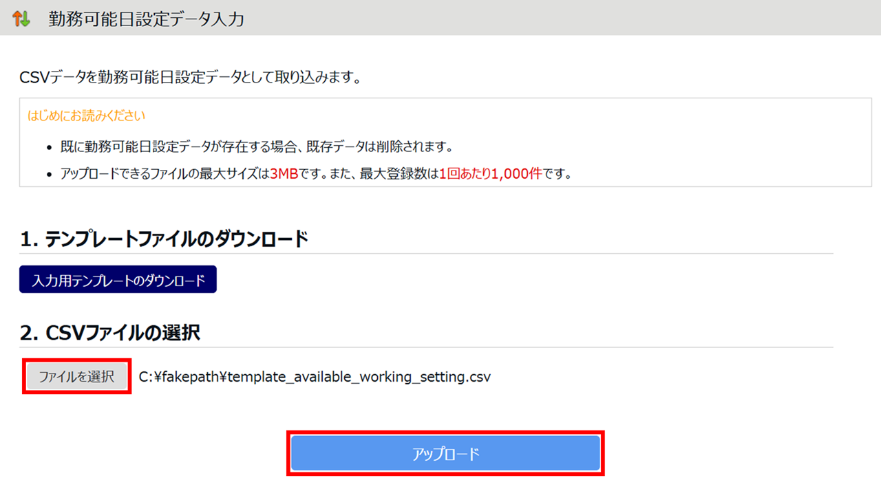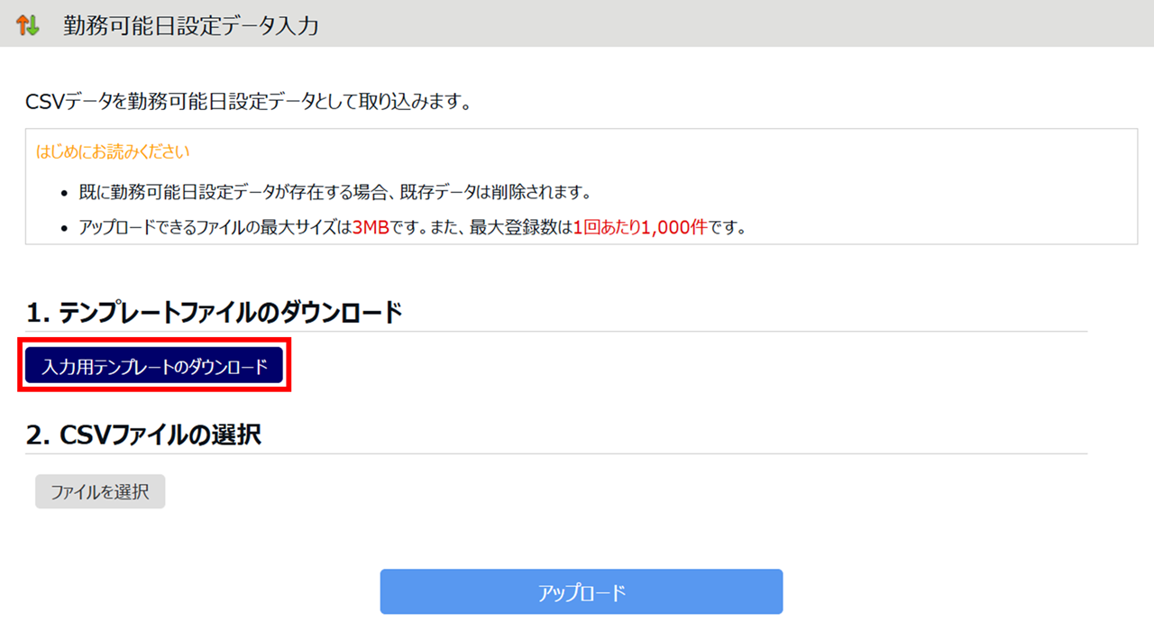 勤務可能日設定データの一括登録方法をご説明します。