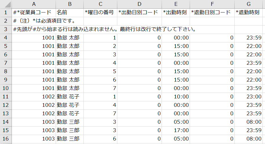 「終日勤務可能」をインポートしたいときは、以下のように入力してください。