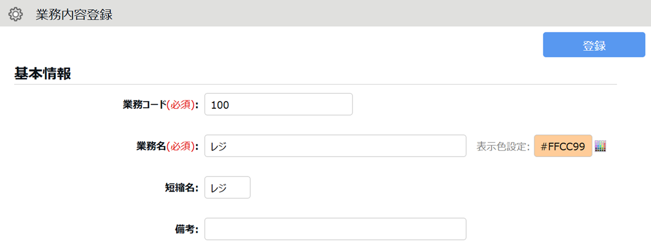 ホーム画面「設定」内[その他]>[業務設定]にて、業務を登録します。設定方法はこちらをご参照ください。