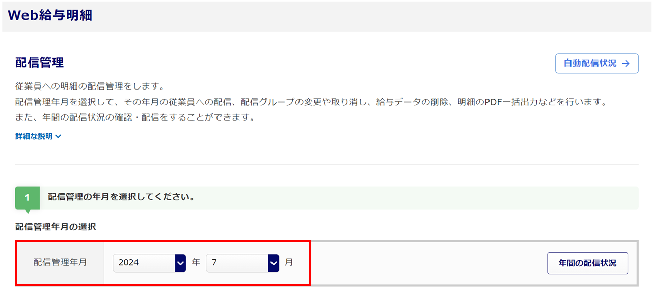「Web照会」で配信する「配信管理年月」を選択します。
