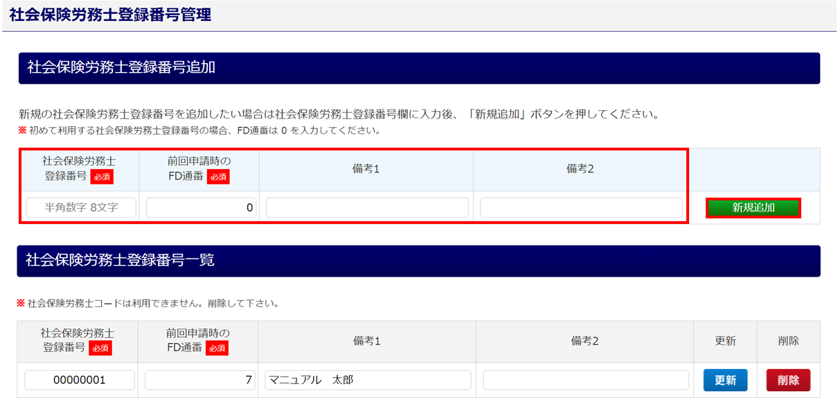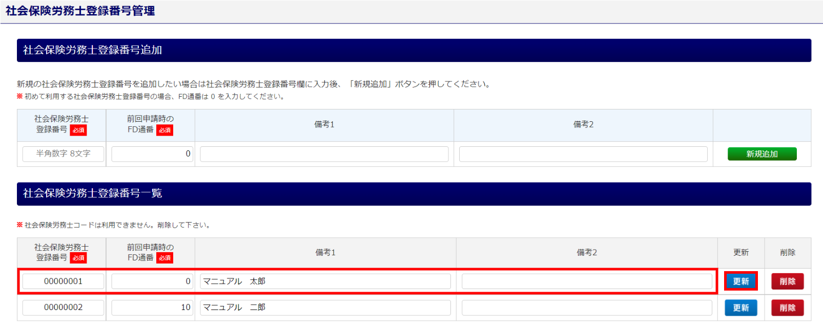 【補足】登録済み社労士登録番号管理の編集