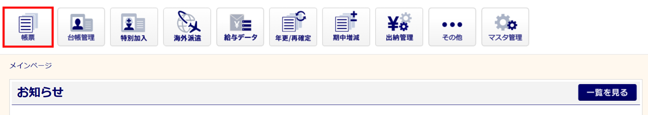 [帳票]をクリックします。
