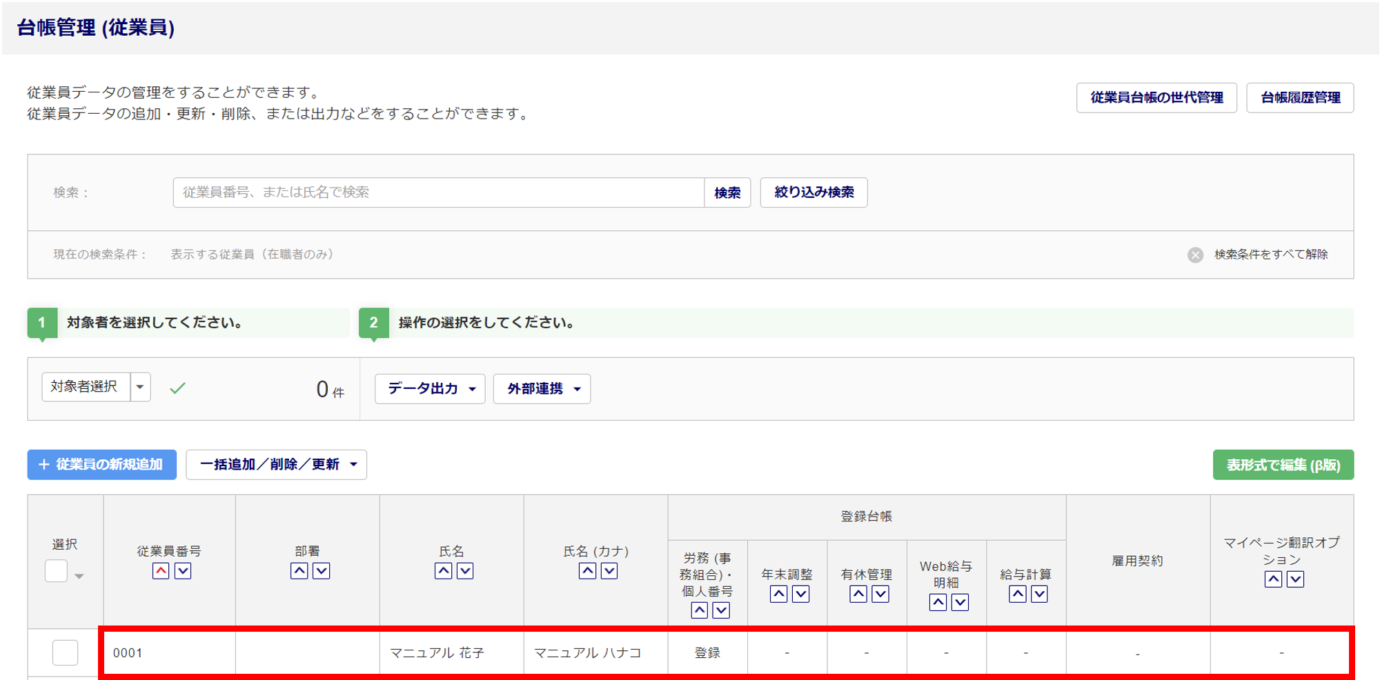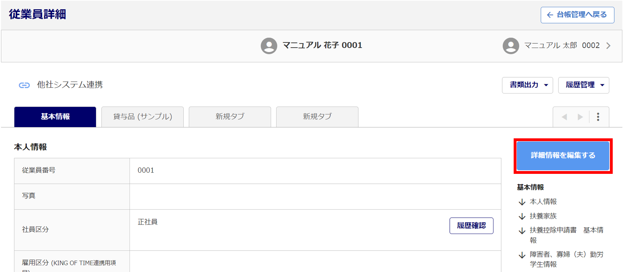[台帳管理]>[従業員]をクリックします。