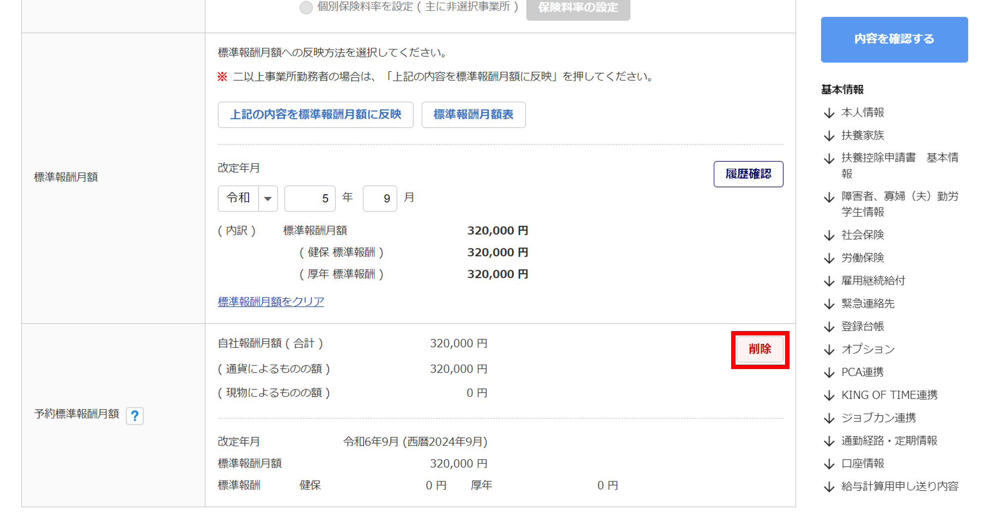 1460|「予約標準報酬月額」削除方法