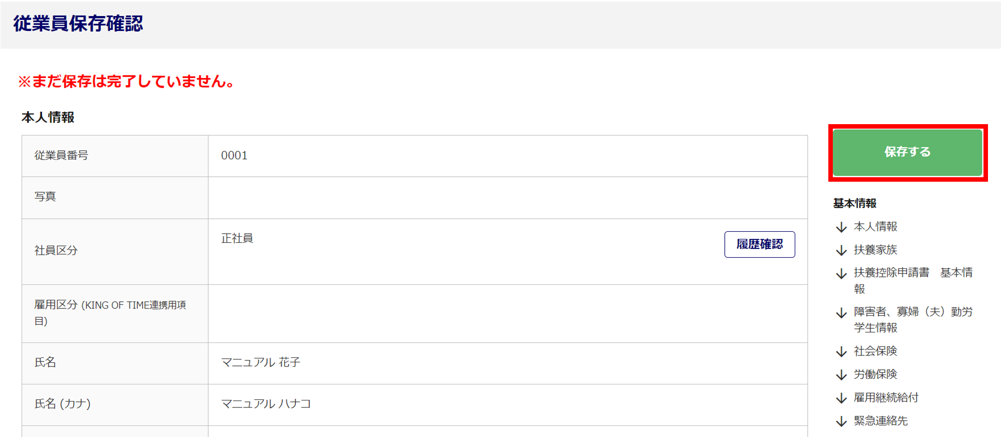 [内容を確認する]>[保存する]をクリックします。