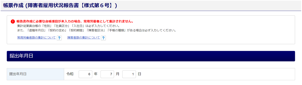 以上で、「障害者雇用状況報告書【様式第6号】」の作成は完了です。
