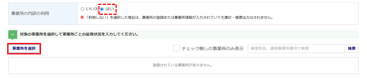 「事業所の内訳の利用」に「はい」を選択した場合