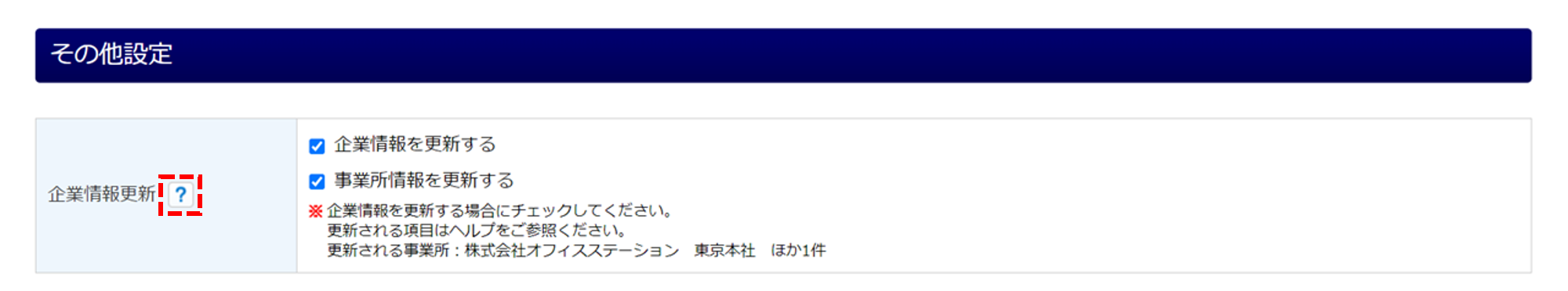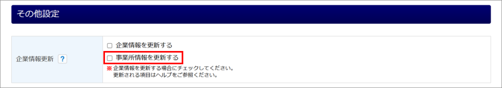 「その他設定」欄の「事業所情報を更新する」にチェックしない場合、追加した事業所は本帳票でのみ情報を使用します。