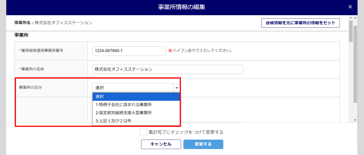 「事業所の区分」を設定します。