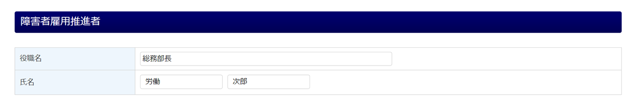 「障害者雇用推進者」を選任している場合は、推進者の「役職名」と「氏名」を入力します。