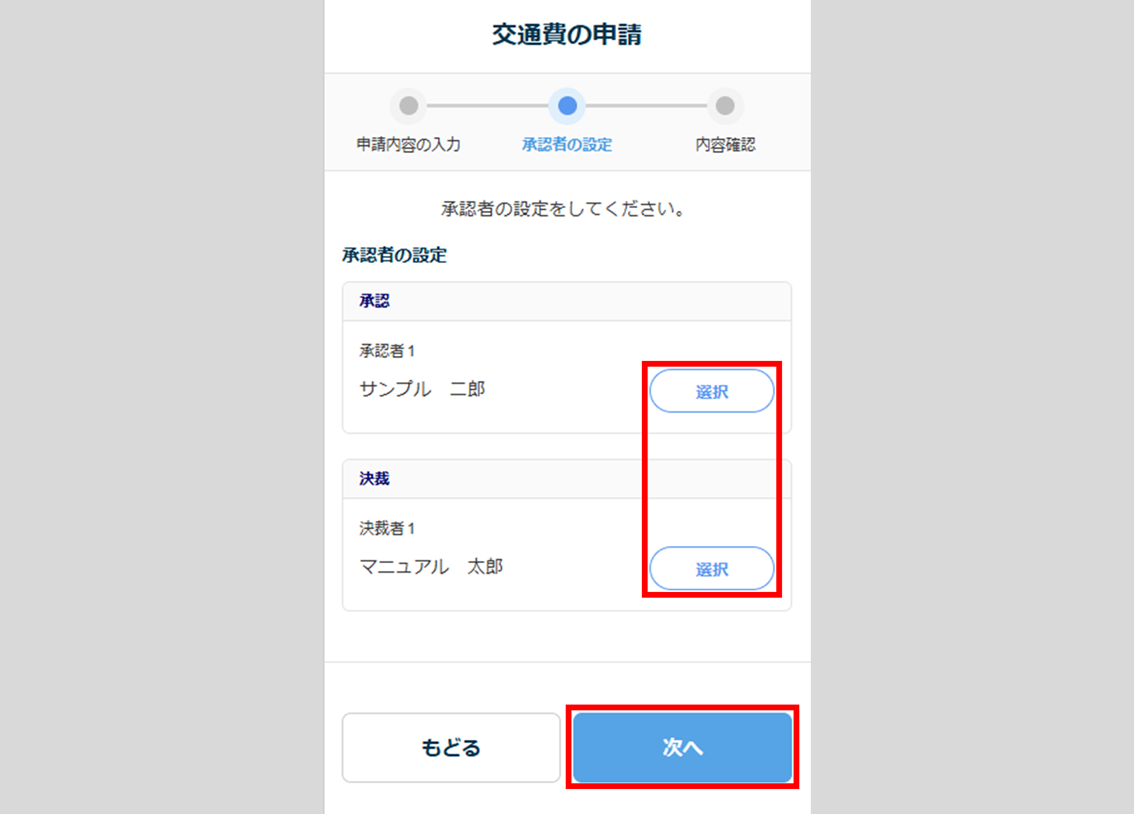 承認者を変更する場合は、[選択]をクリックします。