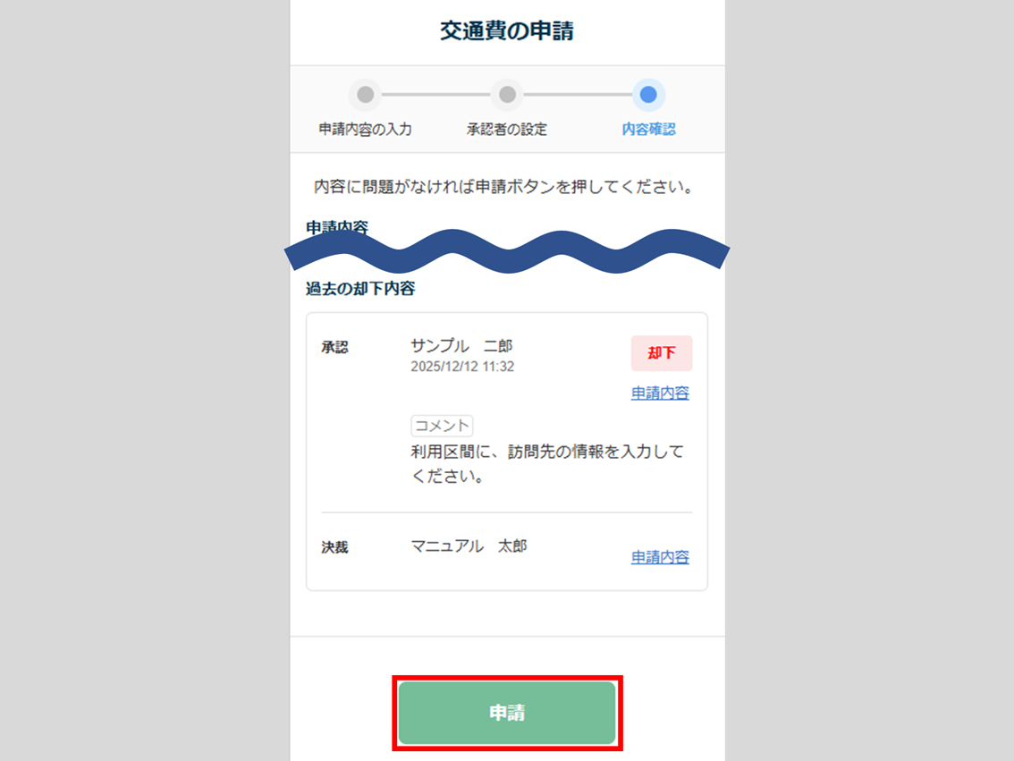 内容を確認し、[申請]をクリックします。