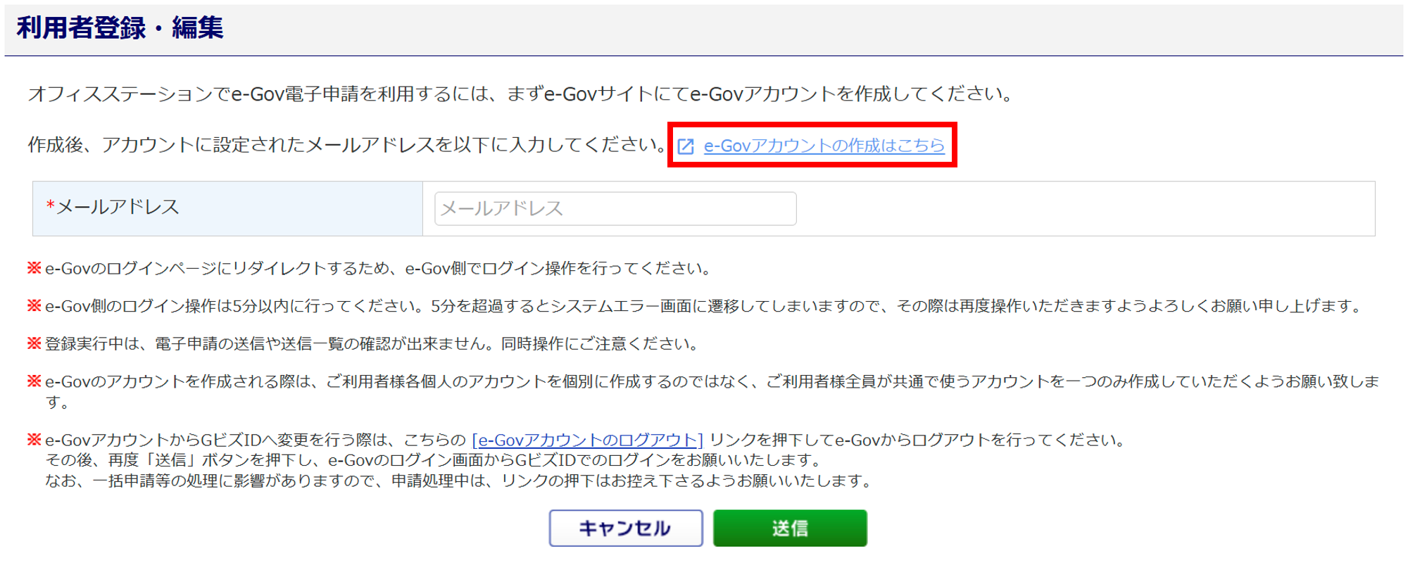 オフィスステーションに登録できる、e-Govアカウントは1つのみです。