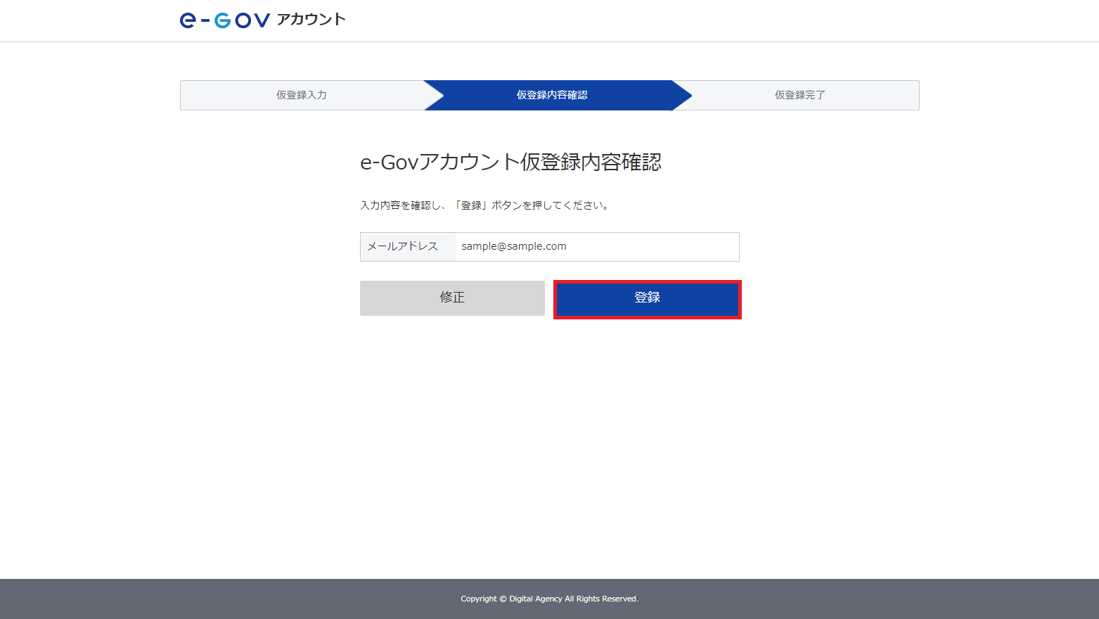 登録内容を確認し、[登録]をクリックします。