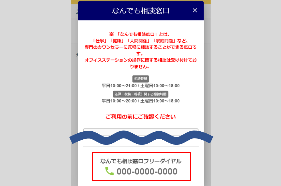 画面下部に表示される「なんでも相談窓口フリーダイヤル」の電話番号におかけください。