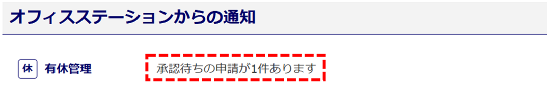 「オフィスステーションからの通知」に「承認待ちの申請が〇件あります」と表示されます。