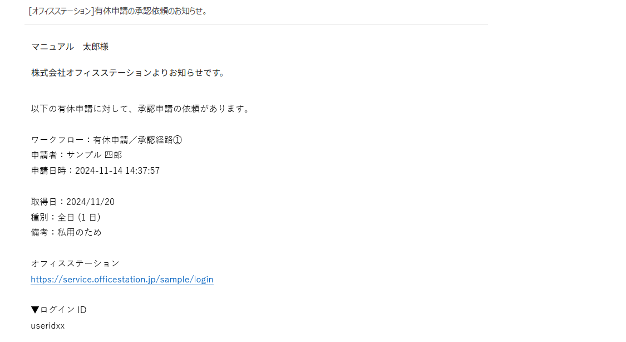 有休申請の承認依頼のお知らせ