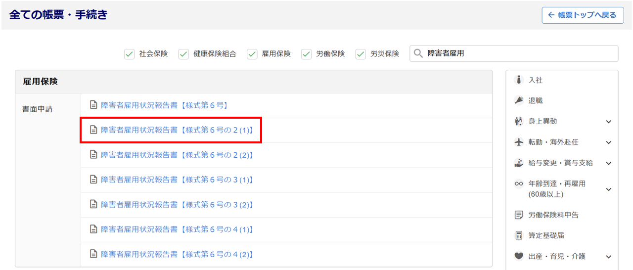 [障害者雇用状況報告書【様式第6号の2(1)】]をクリックします。