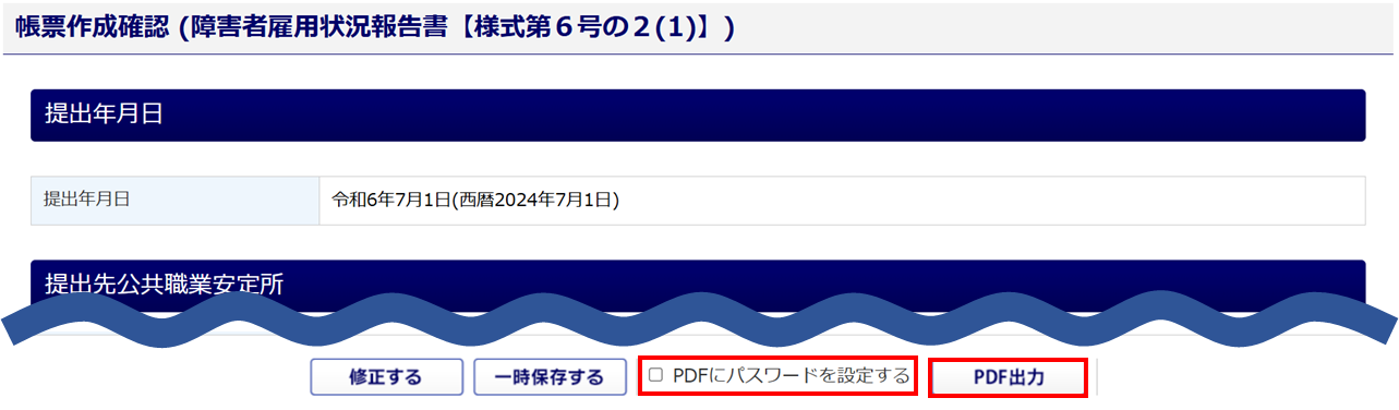 「障害者雇用状況報告書【様式第6号の2(1)】」が出力されます。