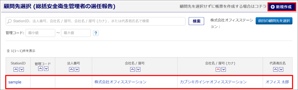 ※顧問先を選択せずにスポットでのお手続きの場合は、[新規作成]をクリックしてください。