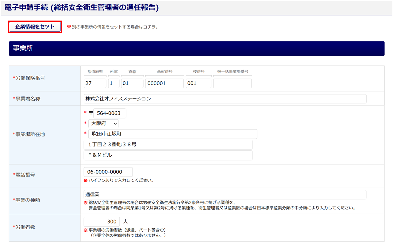 ※入力フォームの背景色が黄色の項目は、[企業情報をセット]で選択した情報を引用しています。