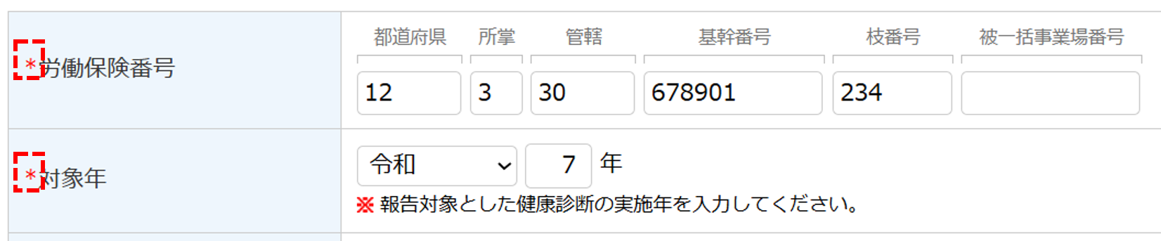 「*」がついている項目は必須入力です。未入力のまま申請することはできません。