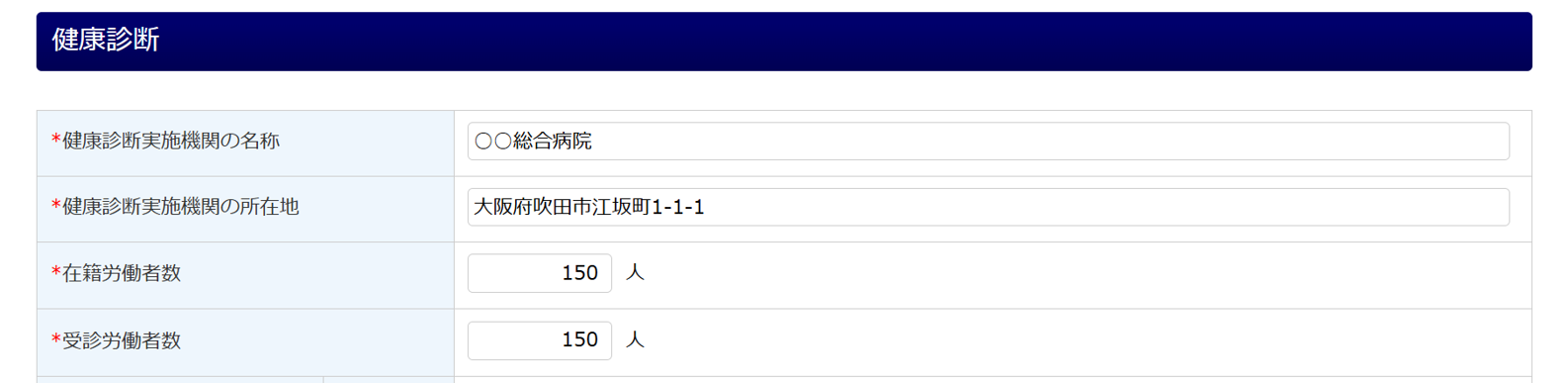 各検査項目ごとの「実施者数」と「有所見者数」を入力します。