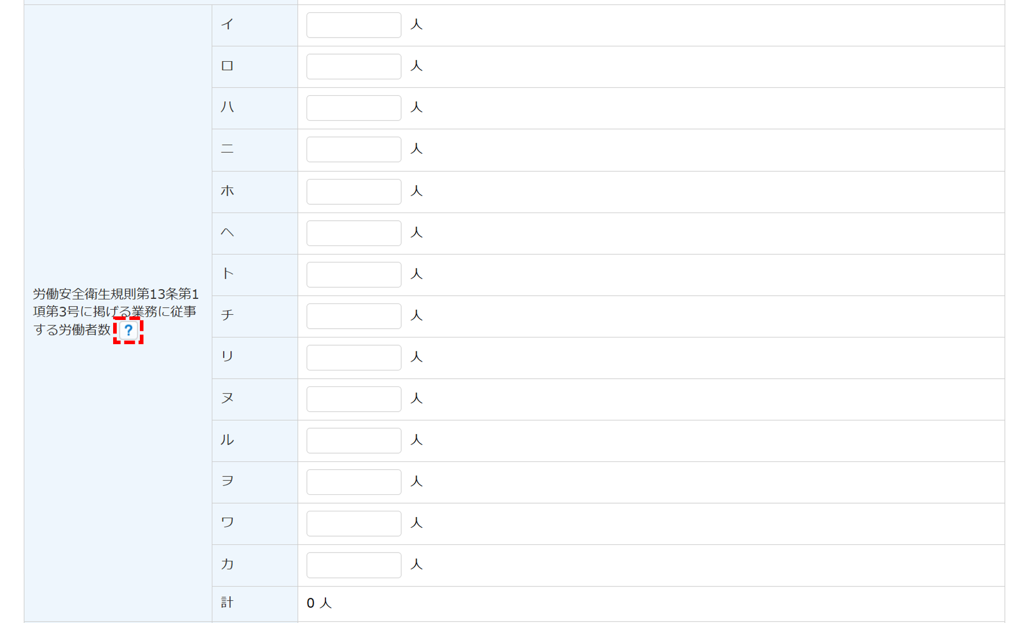 ※[?]をクリックすると、イ~カに該当する特定業務について確認ができます。
