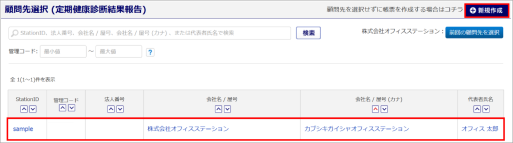 ※顧問先を選択せずにスポットでのお手続きの場合は、[新規作成]をクリックしてください。