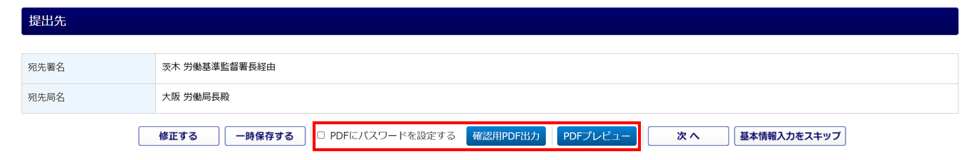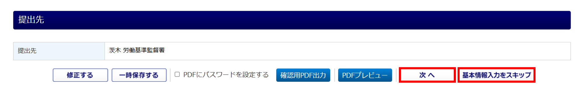 「電子申請手続確認」画面で、[基本情報入力をスキップ]をクリックした場合は、「提出情報入力」へお進みください。
