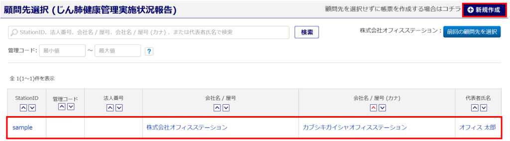 ※顧問先を選択せずにスポットでのお手続きの場合は、[新規作成]をクリックしてください。