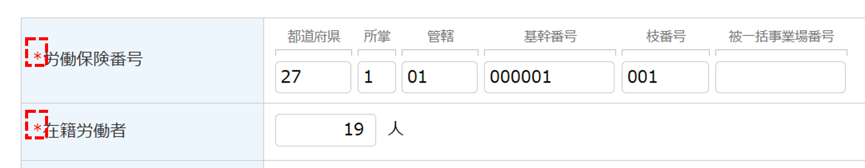 「*」がついている項目は必須入力です。未入力のまま申請することはできません。