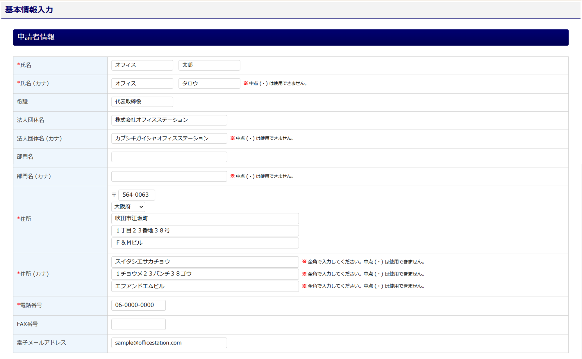 ※入力フォームの背景色が黄色の項目は、[企業情報をセット]で選択した情報を引用しています。